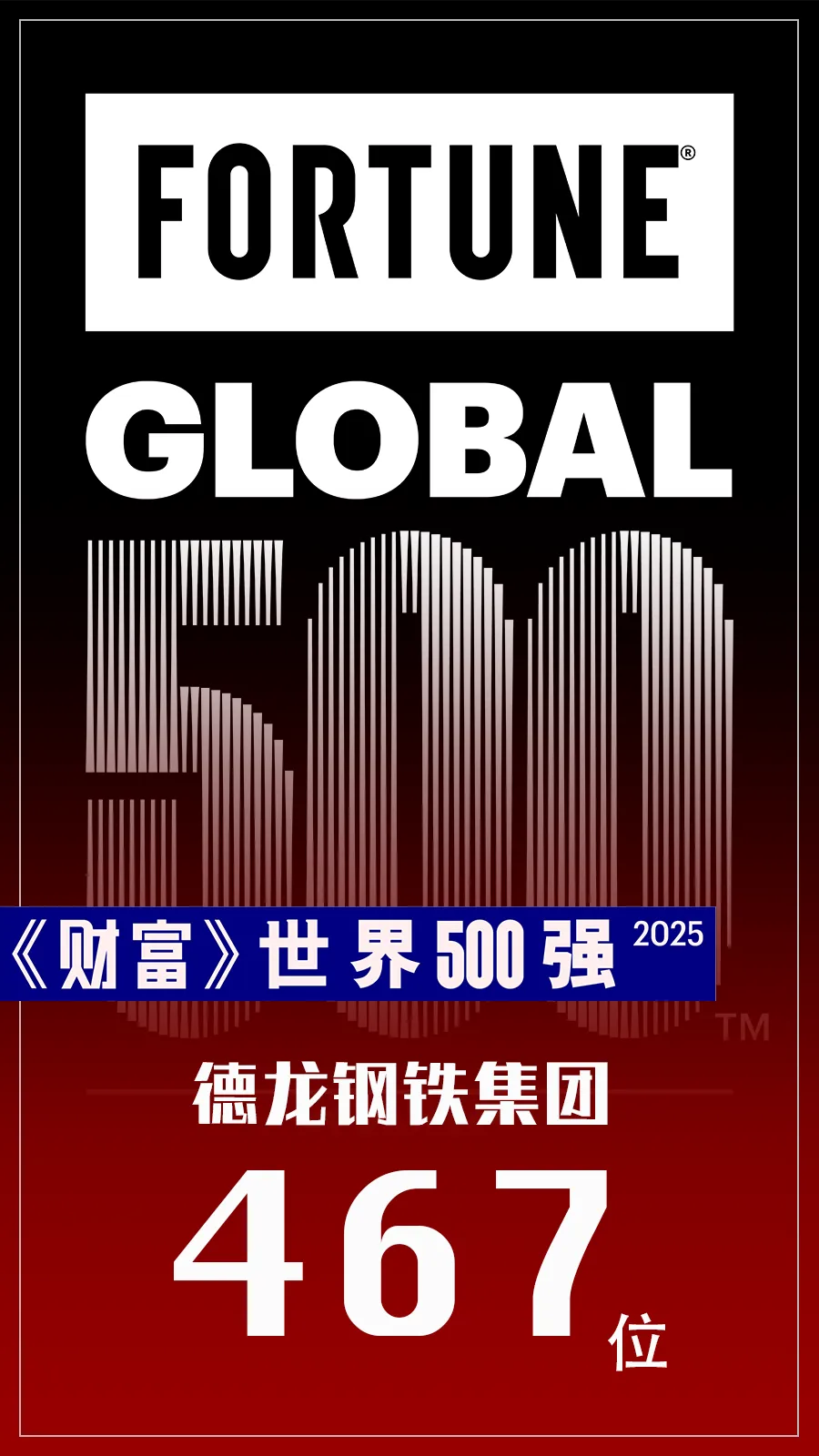 今年7月,2025年《财富》世界500强榜单正式发布,德龙钢铁集团连续四年登上《财富》世界500强榜单,位列467位。