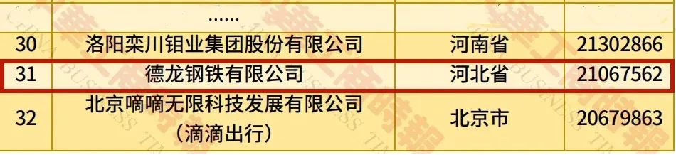 8月28日,全国工商联发布“2025中国民营企业500强”榜单,德龙钢铁集团位列第31位。同时,德龙钢铁集团上榜“2025中国制造业民营企业500强”榜单,位列第23位。